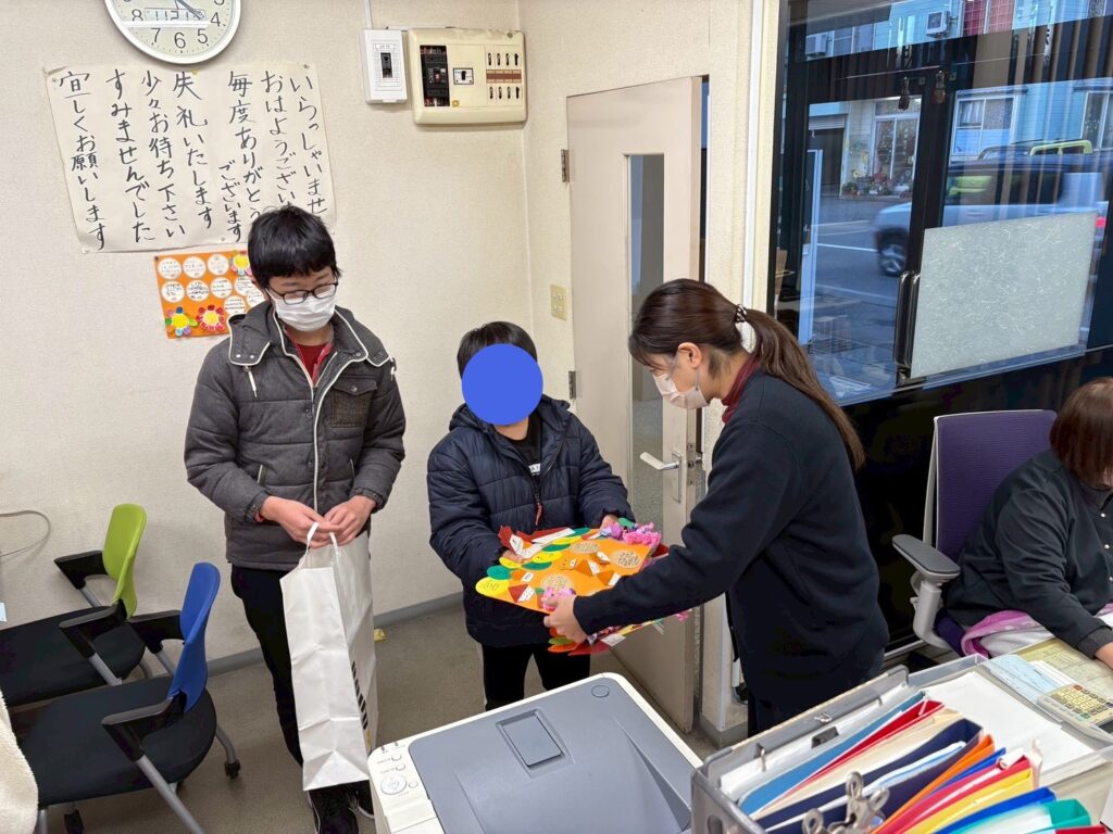 一生懸命作ったメッセージカードを児童代表としてTさん、Hさん、Yさんに届けてもらいました。社員の方々も喜んでくれ、さっそく社内に飾ってくれるとのことでした☆